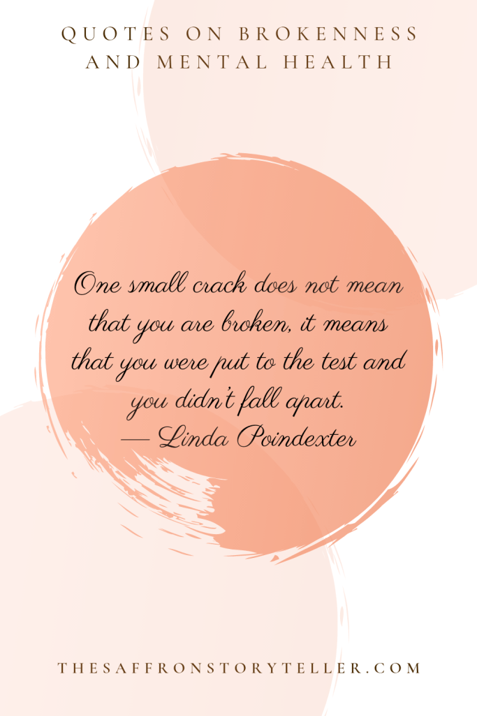 One small crack does not mean that you are broken, it means that you were put to the test and you didn’t fall apart.” — Linda Poindexter