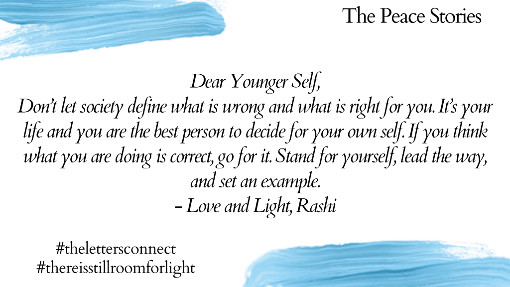 Letter writing is a great way to connect to people across the world. In The Letters Connect, we write letters to strangers, our dear ones, and our younger selves. I asked Rashi if she was told to write a letter to her younger self, what would be that one thing she would write her must? Here is what she writes to her younger self.