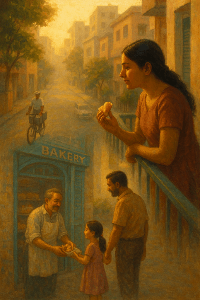 Back in her small hometown, every Monday morning, Preeti and her father would set out together. It was the weekly holiday, so the market streets wore a sleepy hush. But ‘The Town Bakery’ always remained open. Its buttery aroma created a quiet oasis amid the stillness.